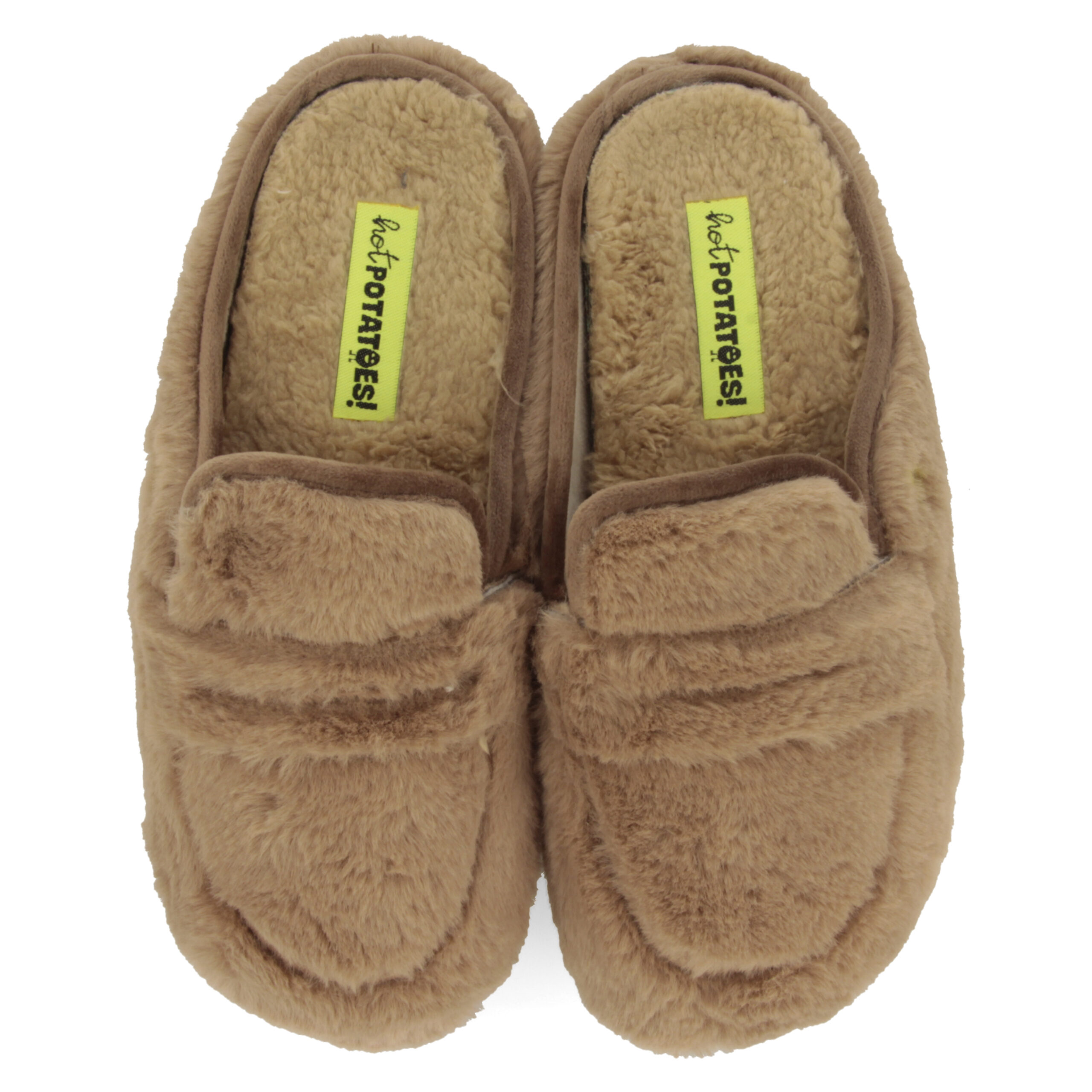Loafers outside én inside! En dan ook nog eens in een mega zachte variant. Vergeet je ze door het comfort een keertje thuis uit te trekken? Geen probleem. Met deze sloffen ben jij een ware trendsetter. | Hot Potatoes pantoffel voor dames. Comfortabel en Made in Spain. Vervaardigd van polyester en de zool is van natuurlijk rubber met gerecyclede kunststof snippers. Met uitneembare inlegzool van 100% gerecycled PU. Hot Potatoes zijn koud wasbaar.