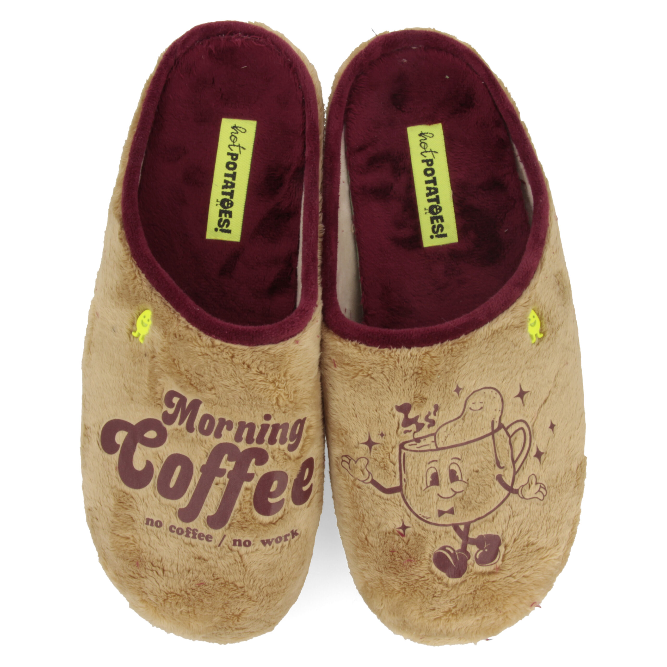 Vanaf nu start je elke dag met een bak koffie én je favoriete Hot Potatoes. Super zacht en mega comfortabel, alles wat je nodig hebt voor de start of het eind van een lange dag. | Hot Potatoes pantoffel voor dames. Comfortabel en Made in Spain. Vervaardigd van polyester en de zool is van natuurlijk rubber met gerecyclede kunststof snippers. Met uitneembare inlegzool van 100% gerecycled PU. Hot Potatoes zijn koud wasbaar.