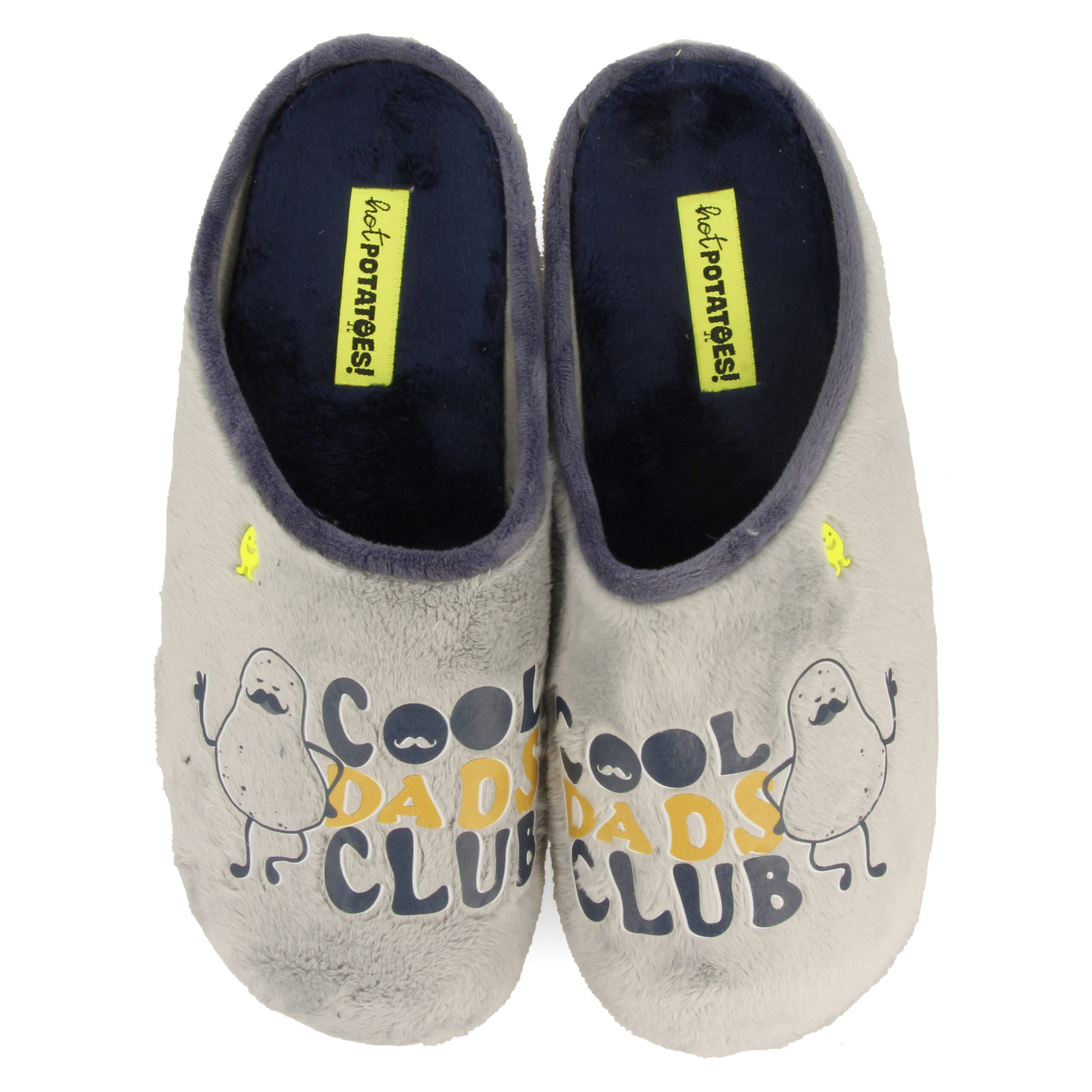 Alle coole vaders, opgelet! Deze mega comfortabele sloffen hebben een toffe print, zijn mega zacht én zorgen voor maximaal comfort door de anatomische binnenzool en stevige buitenzool. | Hot Potatoes pantoffel voor heren. Comfortabel en Made in Spain. Vervaardigd van polyester en de zool is van natuurlijk rubber met gerecyclede kunststof snippers. Met uitneembare inlegzool van 100% gerecycled PU. Hot Potatoes zijn koud wasbaar.